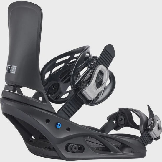 Re:Flex™ Binding System – Offers more flex, feel, and cushioning than traditional disc bindings, in a package that's universally compatible with all current mounting systems, including 4x4, 3D® (via Burton Rider Service), and the Channel®. The minimized, cored base-plate with Living Hinge™ disc reduces the weight and footprint of the binding, while also bending freely for a more natural flex.